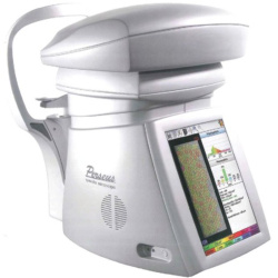 The Ocular Response Analyzer utilizes a rapid air impulse, and an advanced electro-optical system to record two applanation pressure measurements; one while the cornea is moving inward, and the other as the cornea returns. Due to its biomechanical properties, the cornea resists the dynamic air puff causing delays in the inward and outward applanation events, resulting in two different pressure values: