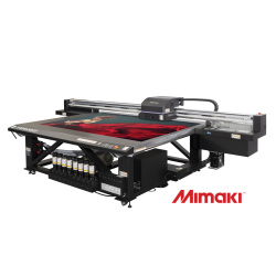 - Unlike conventional models, the print table moves the substrate under the staggered print heads, using Mimaki’s exclusive ball screw technology to reduce vibration and increasing ink drop accuracy.