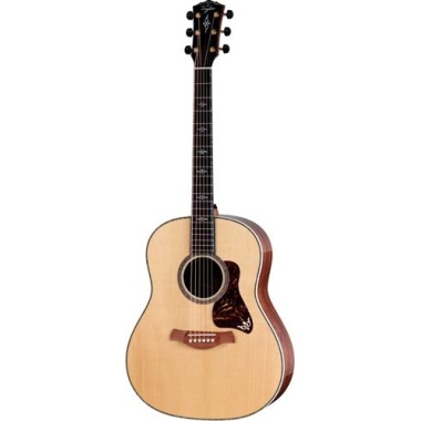 This model features a modified peghead shape with an angled-back design, script-style Taylor logo and paua purfling that culminates in a distinctive visual flourish at its crown. Other aesthetic touches include a full-body gloss finish, new paua/mother-of-pearl Continental Deluxe inlays, a single-ring paua/Honduran rosewood rosette, a Honduran rosewood curve wing bridge, Indian rosewood bridge pins, grained ivoroid binding, and paua fretboard and top purfling. Equipped with LR Baggs Element VTC electronics and Gotoh 510 antique gold tuners with ebony buttons, this model comes in a deluxe hardshell case with a British Cocoa exterior.